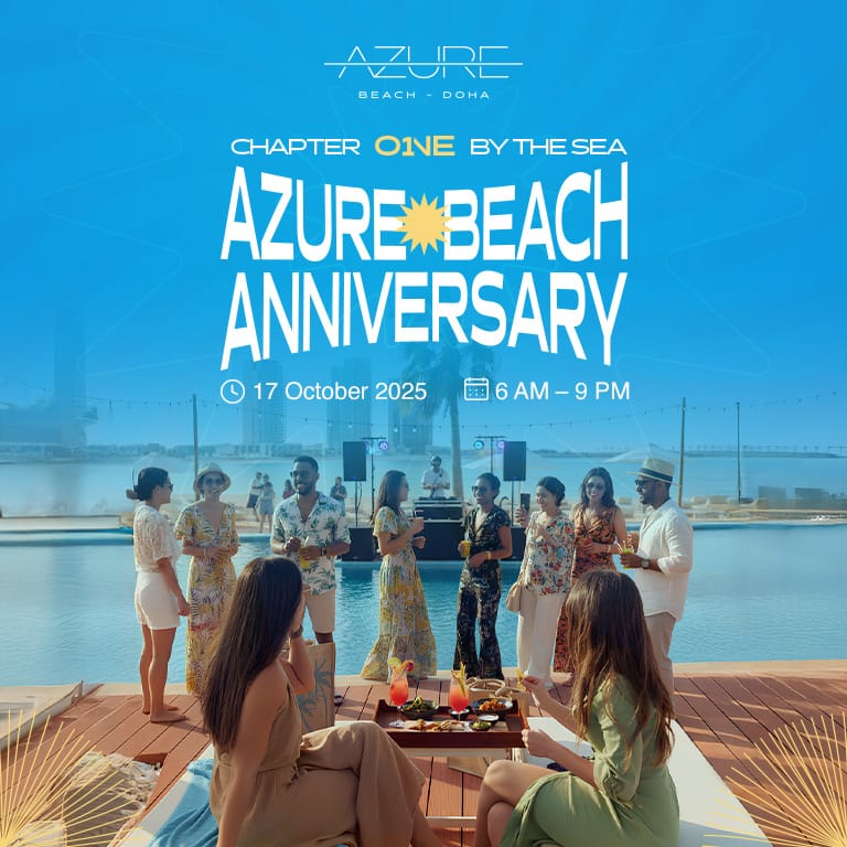 From sunrise to sunset, this is where every connection starts Chapter One by the Sea begins at Azure Beach A full day of celebration, connection, and coastal vibes awaits! Join us on October 17 for the Azure Beach first Anniversary, a day filled with music, sports, relaxation, and unforgettable moments by the sea ️ From sunrise to sunset, this is where every connection starts Azure Beach Anniversary at CGPH+33 Doha events Nightlife Azure Beach Doha