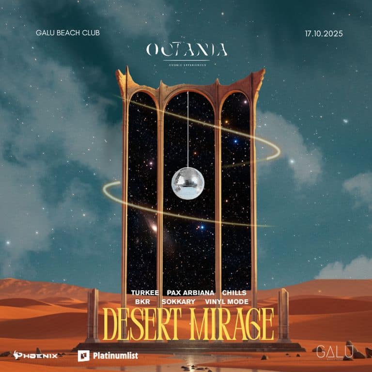 . Desert Mirage by Octania Under the golden sky of Jeddah, Octania returns with Desert Mirage a unique beach music experience that blends the soul of the desert with the rhythm of the waves. Get ready for an unforgettable night filled with deep sounds, vibrant energy, and creative vibes — presented by Golden Power Entertainment and Octania. Featuring an outstanding lineup of local and international DJs, delivering electrifying sets in a stunning beachside atmosphere enhanced by immersive lights and visuals. Let the music move you. Let the desert meet the waves. Desert Mirage in Jeddah at RXWX+5C Dahaban events Nightlife Galu Beach Club Vinyl Mode