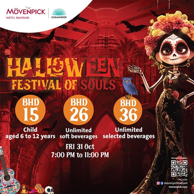Step into a world where shadows dance and spirits come alive at Mövenpick Bahrain’s Festival of Souls! ✨