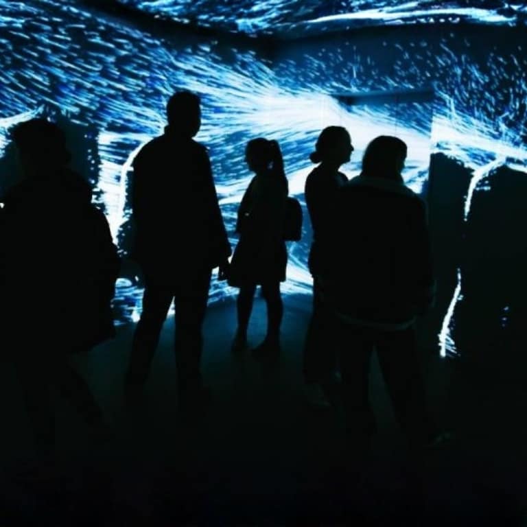 A dramatic countdown signals the next chapter of the experience as you step inside the interactive Infinity Room where energy particles swirl, rise and fall around you, gathering pace as they respond to your touch.